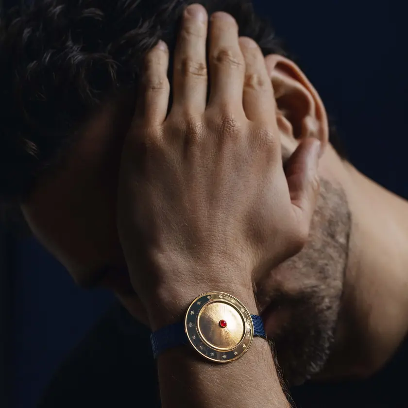 L’originalité de cette pièce, accompagnée d’un bracelet en cuir de lézard bleu nuit intense, renforcera votre persévérance et l’admiration que les autres vous porteront.